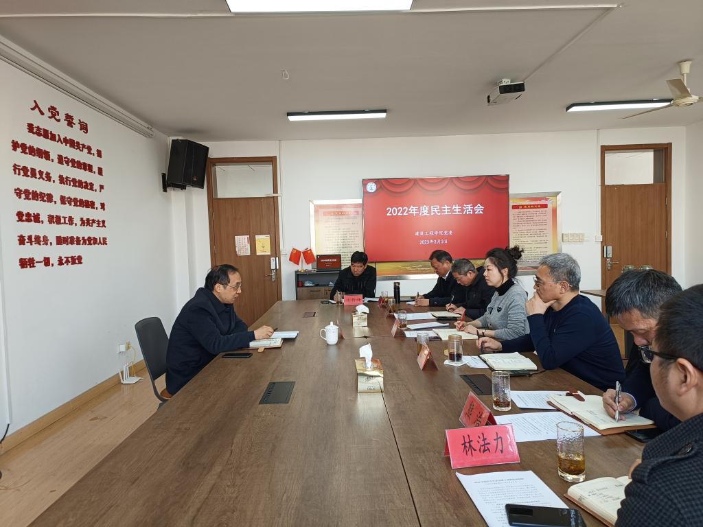 3月3日上午,建工学院党委召开2022年度民主生活会,校党委委员,副校长胡韶光到会指导。院党委书记潘瑛主持会议,学院党政领导班子成员、党委委员参加。