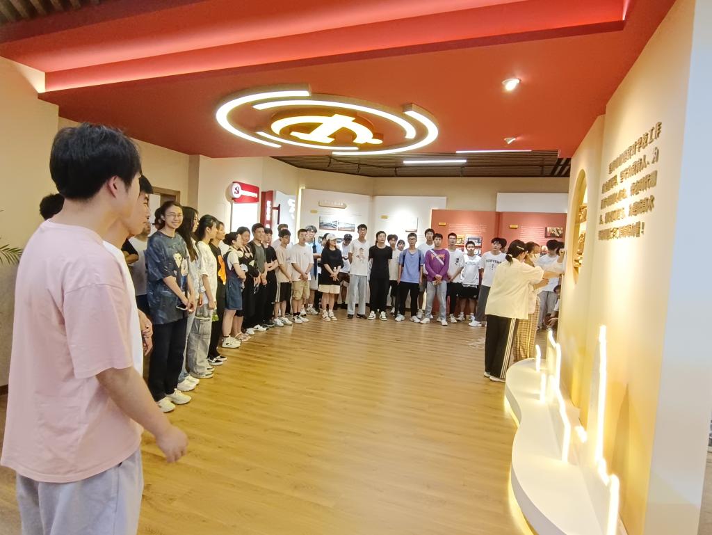 步入展厅,时光的隧道轰然开启。从1921年南湖红船中国共产党的成立到1927年南昌起义打响推翻国民党反动政府的第一枪,再到领导人民取得新民主主义革命、社会主义革命胜利,到如今迈进新时代中国特色社会主义新时期,同学在讲解员的带领下全方位、全过程地感受了中国共产党波澜壮阔的百年历程。学员们还了解到学校党组织的发展历程、学校的党建重点工作和“一院一品”党建品牌活动的开展情况。
