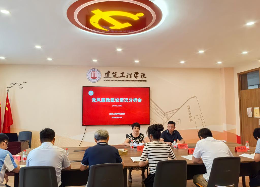 深入贯彻校第四次党代会精神和“勤廉校园”建设的重要部署,推进党纪学习教育走深走实,6月27日上午,建筑工程学院党委召开2024年上半年党风廉政建设情况分析会。校党委委员、组织部长吴银银,校校纪委副书记、纪检监察室主任郑建华到会指导,学院班子成员、党委委员及纪委委员参加会议,党委书记潘瑛主持会议。