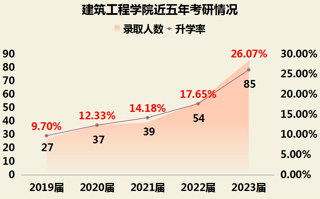 星光不负赶路人,时光不负追梦人。随着2023年全国硕士研究生考试复试工作逐渐落下帷幕,建工学子在研究生考试中捷报频传。截至目前,共有85位同学成功上岸,硕士研究生录取人数实现新跨越,考研升学率达26.07%,相比去年提高近9个百分点,录取院校包括湖南大学、福州大学、上海大学、北京交通大学、南京航空航天大学等知名院校,其中录取“双一流”高校与境外高校占比达到25.88%,并涌现了15栋338、7栋420、3栋615等3个学霸室。