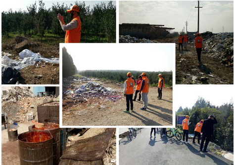 当天上午,学院志愿者经过2个多小时的骑行来到椒江三甲农场。志愿者心中的三甲农场应该是一个生机勃勃、景色优美的地方,可眼前景象却让他们大跌眼镜,到处都是浑浊的河水以及漂浮于水上的垃圾,整个水系统“水华”严重;隐蔽的几块空地上,满地的各类垃圾,包括建筑垃圾、工业垃圾以及严重危害人体健康的塑料生产过程中的废渣,周围的空气中弥漫着刺鼻的味道。志愿者还通过寻找,发现河道隐蔽的排污口,顺着排污口找到河道真正污染源“地沟油”作坊,那里充满了刺鼻的味道。在环保协会工作人员的指导下,志愿者对相关生产行为进行拍照取证,一同采集了相关样本,用于进一步检测各方面指标。