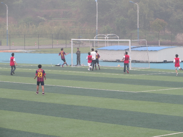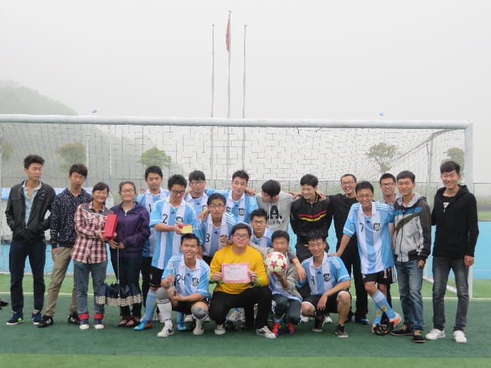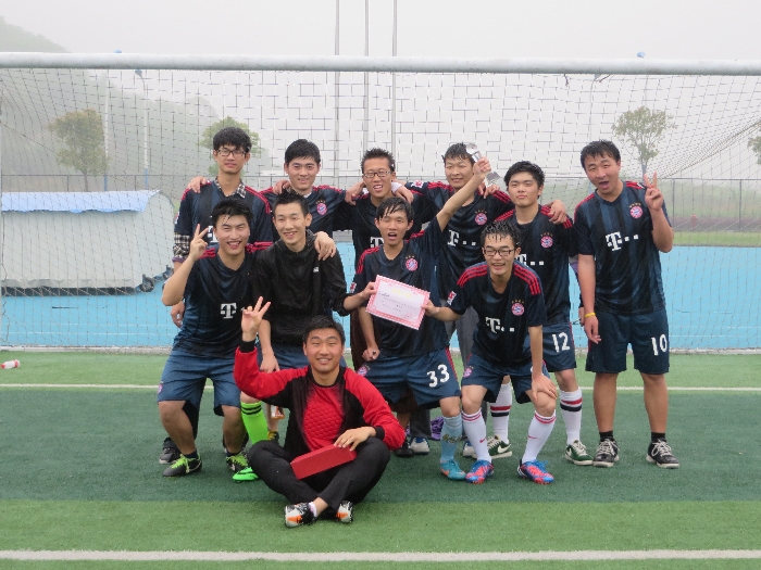 天空虽飘着蒙蒙细雨,但丝毫不影响运动员和啦啦队的热情。在开旷的绿茵场上,身着鲜艳队服的运动员们斗志昂扬的奔跑着;守门员全神贯注,蓄势待发要拦截每个飞来的球;啦啦队员们为场上队员的出彩表现,呐喊着、喝彩着。在经过两个月的激烈赛事后,11土木工程12夺得了本次班级足球赛的冠军!