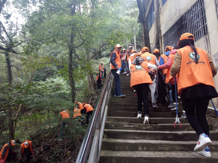 黄岩方山位于城区东郊1公里,主峰海拔高529米,以平地突起、岩壁峻峙、四望皆方正而得名;景区有方山小筑、三寺双塔、丫髻岩以及黄牯岩等10多处景点,吸引着大批游客前来户外旅游。而伴随着众人到来的,比较难清理的高山垃圾开始污染方山景区生态环境,因此志愿者们统一组织,结伴上山开始做方山的环保活动。当天,志愿者在简单的任务分工与安全教育后,顶着凛冽的寒风爬上方山,迅速投入清理工作。活动中,志愿者还有幸认识了一位50年如一日从事山区环保工作的志愿者前辈,受到前辈无私奉献精神的鼓舞,志愿者们热情高涨,手持工具认真地清理沿途的垃圾,甚至连细小的垃圾也不放过。