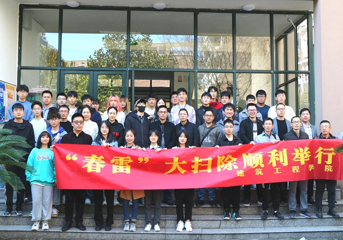 3月25日,建筑工程学院举行了以“春雨涤尘,谱写新篇”为主题的“春雷”大扫除活动,学院党总支副书记林霖、各班班主任及辅导员参与并指导。