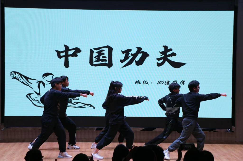 比赛在21土木1的倾情合唱《少年中国说》中拉开了帷幕,向观众展现了少年中国的勃勃英姿与灿烂前程;20道桥带来的《夜空中最亮的星》,以合唱结合杯子舞的独特方式,表达了同学们追逐梦想的坚持。“左弓步搂手冲拳、弹踢冲拳、提膝穿掌”,20建筑学的《中国功夫》将现场气氛瞬间推向高潮。《一起向未来》利用灵活的手势舞表达了我们对于未来的美好期待,一声声铿锵有力的呐喊,一首首洋洋盈耳的歌声,展现了我院学子良好的精神风貌。