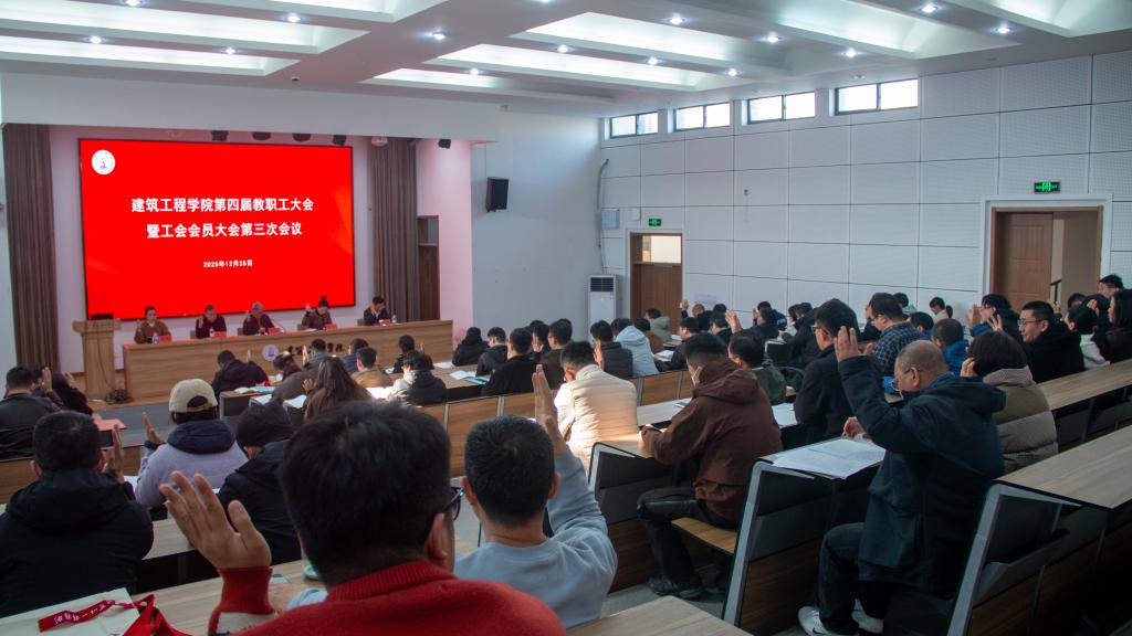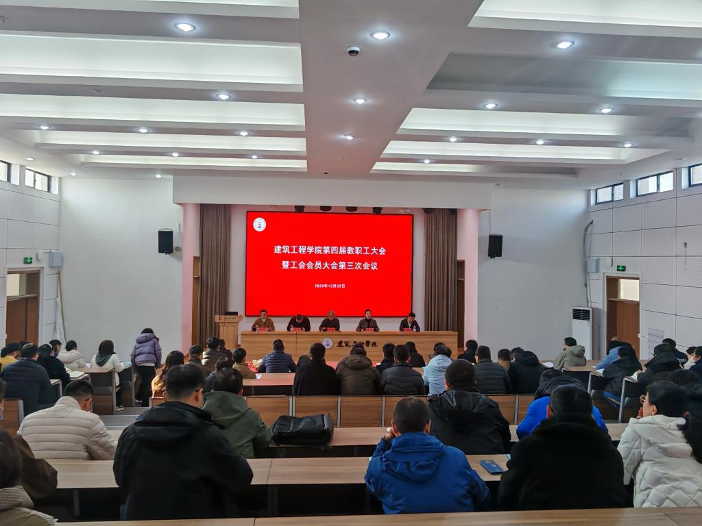 12月25日,建筑工程学院于学术报告厅召开第四届教职工大会暨工会会员大会第三次会议。学院领导班子、全体教职工参加会议,学院党委副书记汤爽主持会议。