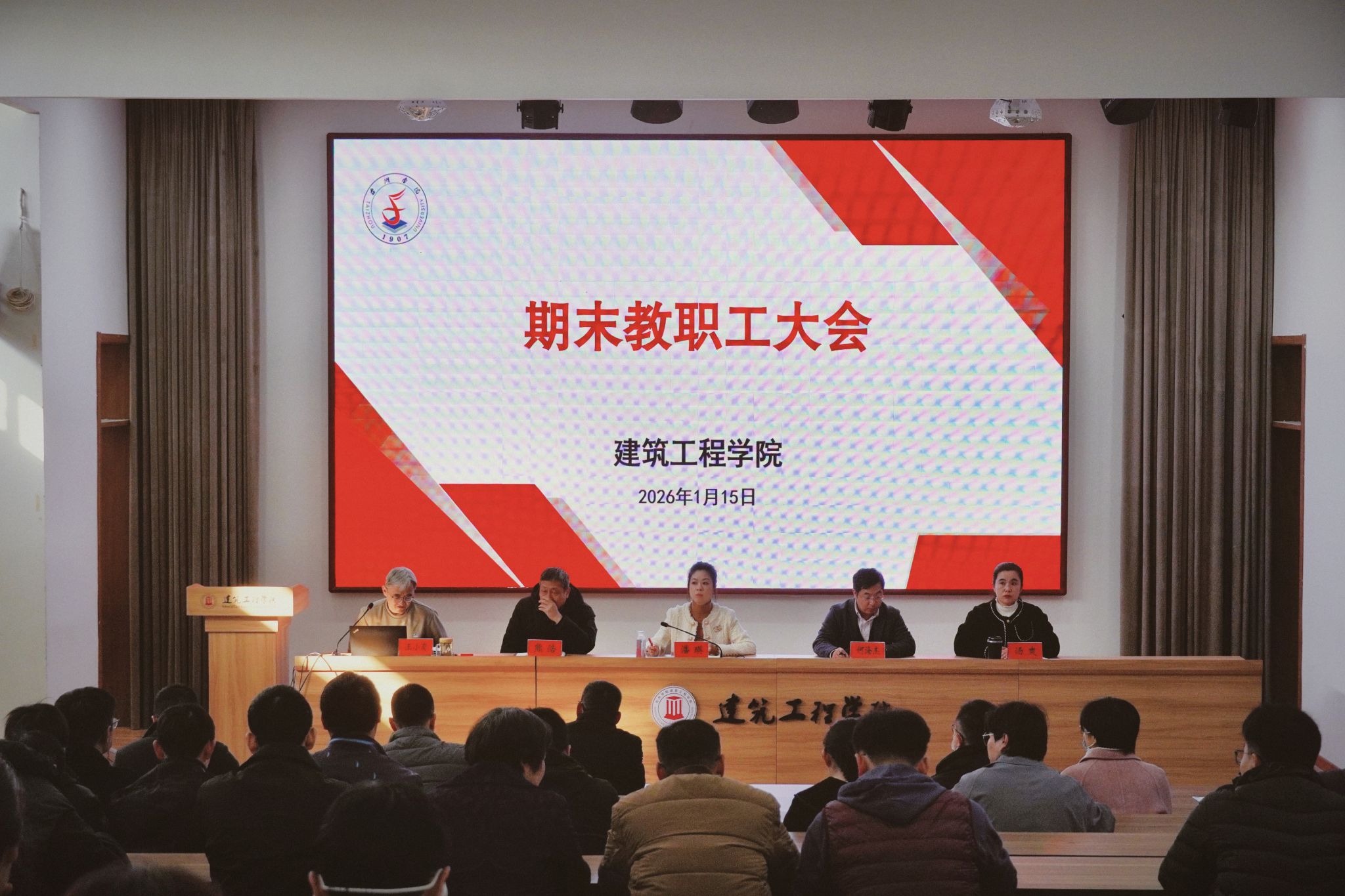 1月15日上午,建工学院召开期末教职工大会。会议由院长王小岗主持,学院领导班子及全体教职工参加。