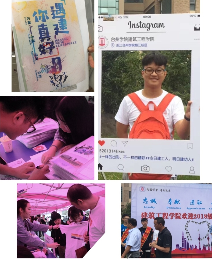 “你好,我是台州学院建工学院迎新志愿者,欢迎加入建工大家庭”,八月下旬,建工学院迎新志愿者逐一致电新生,了解新生情况。组建班级群,搭建平台,推送学校政策和信息,解答疑惑,增进了解;发放“绿色通道”办理表格,送去学校“不让一位学生因家庭困难而辍学”的承诺;统计身高体重,定制2018级专属文化T恤……通过群空间交流,微信公众号推送,点对点答疑解惑,来自全国各地的新生们提前开启大学生活模式,获取台院各种学习生活资讯。
