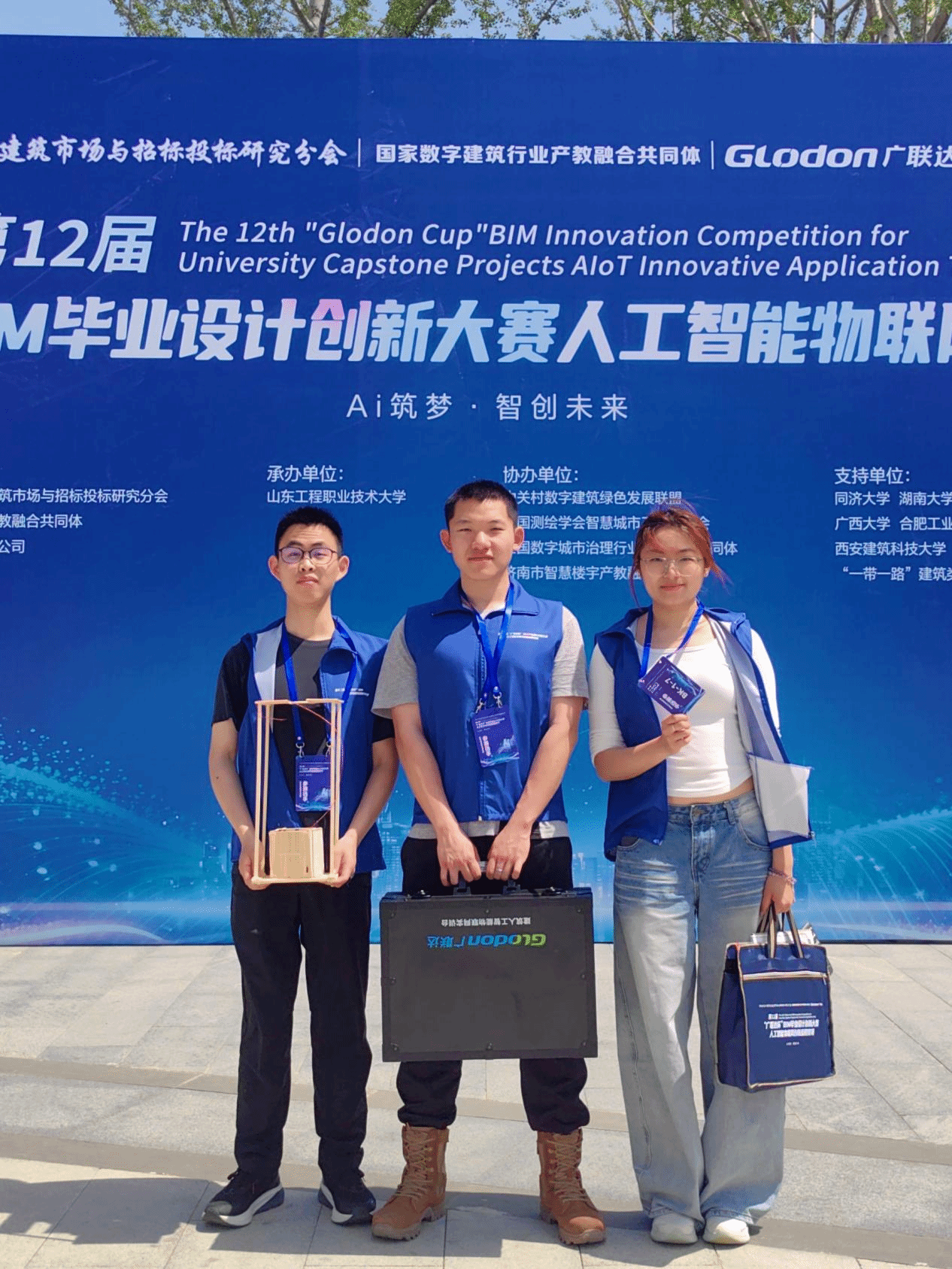 2026年4月19日,第12届“广联达杯”BIM毕业设计创新大赛(原全国高校BIM毕业设计创新大赛)人工智能物联网创新应用赛项全国决赛在济南山东工程职业技术大学举行。台州学院建筑工程学院参赛团队凭借项目“安梯卫士——施工电梯AIoT智能安全控制盒”,荣获全国决赛二等奖。