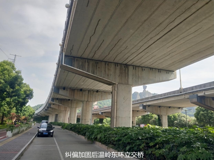 近日,由我校建筑工程学院滨海结构检测与加固技术研究所承担的温岭市东环高架桥纠偏项目顺利完工并通过验收。东环高架桥位于温岭市境内S226A泽坎线,桥长为1665.0m,单幅桥面宽13m,于2003年建成通车,是连接路桥与玉环的主要通道,对温岭的经济发展起着重要的作用。