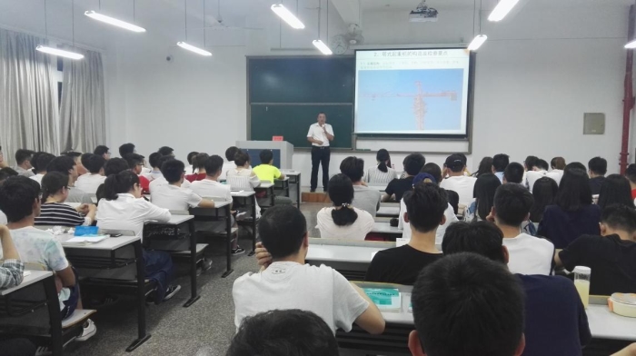 6月13日晚上,工程管理团队邀请方远建设集团股份有限公司副总经理唐兴明高工在3#教学楼为15土木及17专升本学生授课,授课内容为《建筑起重机械安全技术》。唐兴明高工从常见建筑施工起重机械的型号标识及基本构造入手,对建筑起重机械的安装使用技术要求、主要施工安全风险、行业管理现状及趋势等进行介绍。重点讲解了建筑起重机械的各类安全装置,并用他在施工现场安全检查中的典型案例,以及多年来总结和积累的实践经验和操作技巧,说明了施工现场建筑机械安全检查的要点和实用方法。