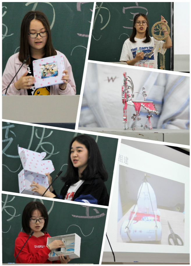 经过初赛的激烈角逐,共13组选手脱颖而出入围决赛。决赛现场,参赛者以幻灯片形式,详细介绍本组作品特色和制作过程。有承载美好幻想的捕梦网,有光晕缭绕的“绿肥红瘦”,有精美实用的创意收纳盒等,每件作品各具特色,构思巧妙,制作精良。