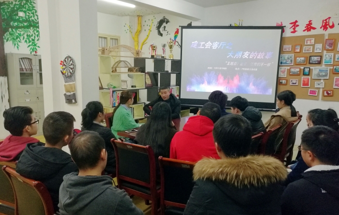 1月11日晚,“建工会客厅之大朋友的故事”开启新年第一讲,聚康合创健康咨询有限公司总经理、放飞梦想公益助学协会创始人王越森先生做客学生公寓活动室,与同学们进行主题为“是爱,让我们不一样”的故事分享会。
