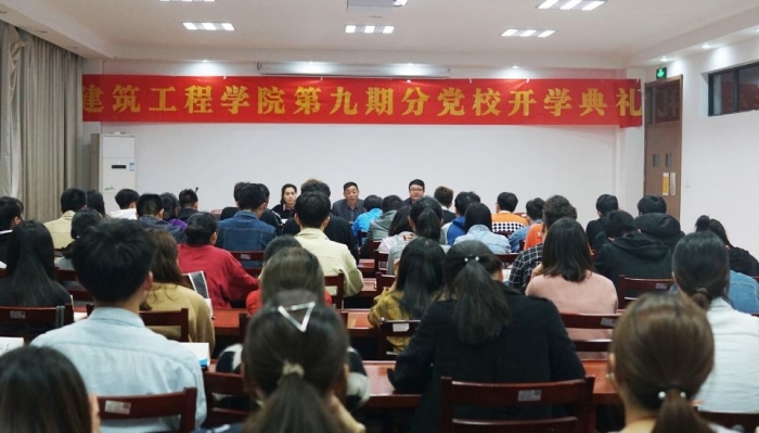 3月29日晚,建筑工程学院第九期业余党校开学典礼在建工大楼会议室举行。学院党总支书记潘岳祥、副书记郑晓莉、学生党支部书记以及78名党校学员出席。典礼由党总支副书记郑晓莉主持。