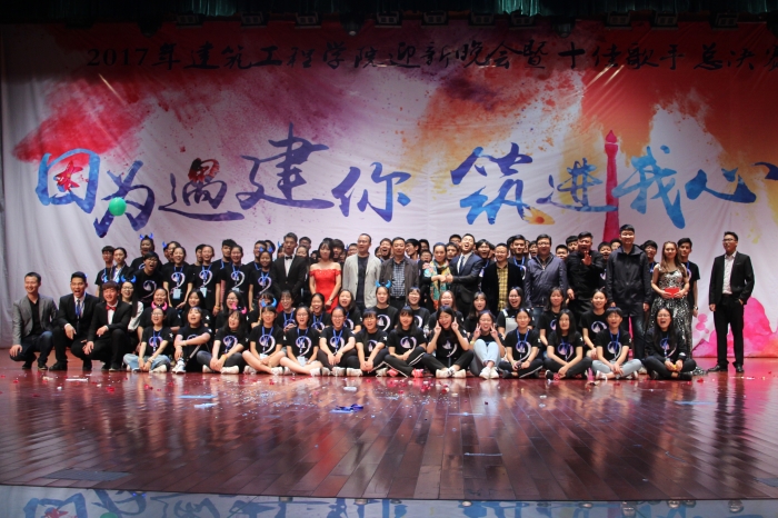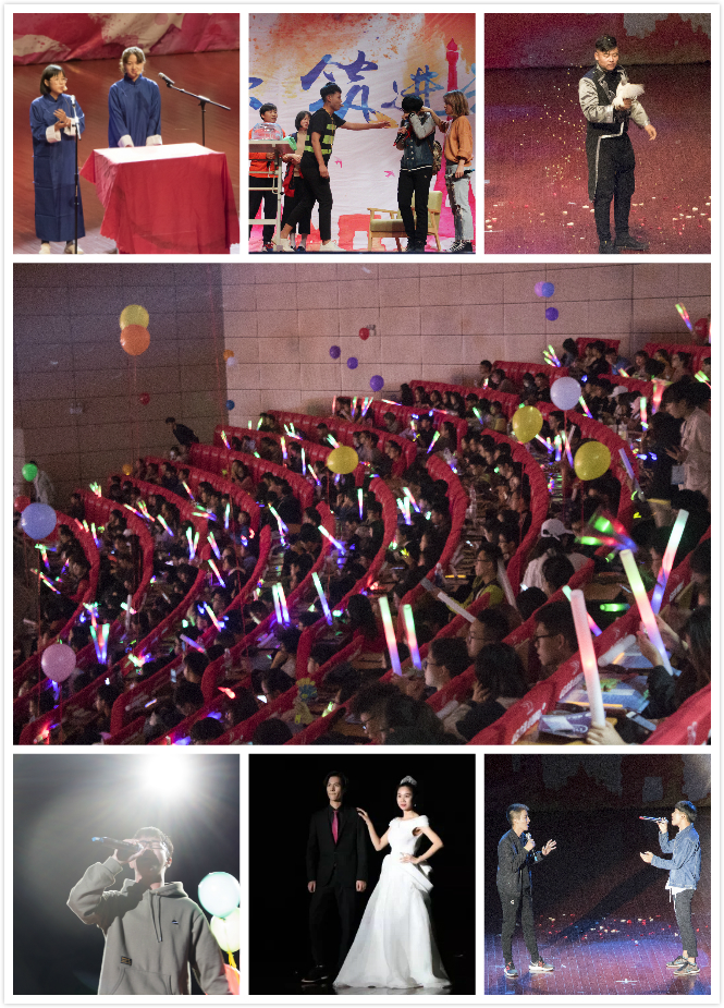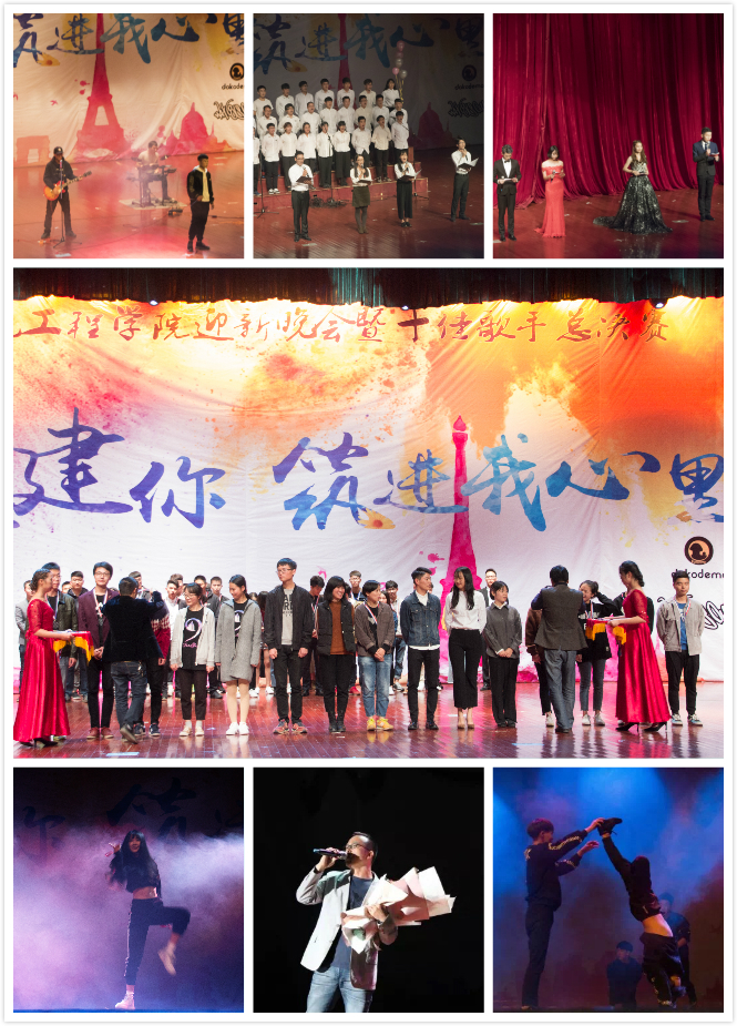 在前期公众号突破7000+点击量的宣传基础上,大礼堂座无虚席。晚会在飞机头乐队演唱的《不再犹豫》和WHIZSOULDE带来的激情开场舞《WHIZSOUL》中拉开序幕。蒋静老师和15级道桥的诗朗诵加大合唱节目《我的台院·我的建工》深情展现了建工学子对台院的热爱和“逢山开路、遇水搭桥”的青春豪情;17级十佳歌手前三强完美演绎了决赛歌曲,表现力强劲;相声《众口难调》、《礼服秀》、街舞《Last Hurrah》、歌曲串烧《歌与远方》和情景剧《家有儿女》一一展现了建工学子的多才多艺;其中肖磊老师演唱的《青春日记》、13级校友宫立伟《魔鸽幻影》、周欣苑老师领衔的女舞《Dancing Queen》更是一次次引爆现场。整场晚会精彩不断,高潮迭起,向2017级新生充分展现了建工人的和合奋进与才华横溢。