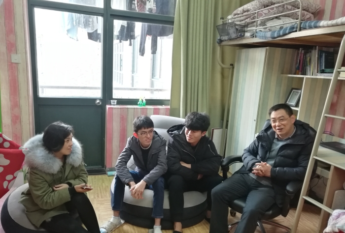 2016年12月27日下午,学院党总支书记潘岳祥在党总支副书记郑晓莉和辅导员李凯老师陪同下走访寝室,了解学期末学生的思想动态、生活状态和学习情况。