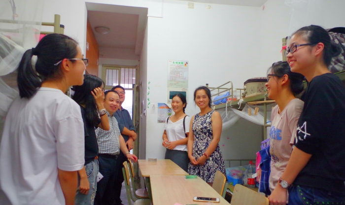 学院党政领导、团队负责人在辅导员陪同下深入迎新一线,并走访新生寝室。“室友都到齐了吗?”、“报到顺利吗?”、“为什么会填报这个专业?”、“饮食住宿习惯吗?”每到一个宿舍,李友富书记都会亲切地同新生和家长交谈并鼓励大家互帮互助、尽快适应新的集体生活,热爱专业、积极向上,把大学作为一个新的起点,不断提高自己的综合能力。交谈中,新生和家长对学院迎新安排、学校校园环境、寝室卫生等都很满意,“学校的老师和同学们都很热情,带我们办理入学手续还为我们介绍了学校、学院、专业的基本情况,来到学校就像回到家一样!”