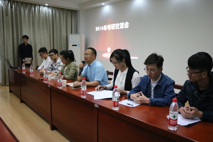为进一步帮助广大同学了解最新考研信息,激发同学们的考研热情,扎实推进学风建设,5月18日晚6:30,我院在建工大楼会议室举办2016年考研交流会,此次考研交流会邀请到院长邱战洪教授、党总支副书记郑晓莉老师以及在12级考研中成绩优异、经验丰富的5位优秀考研学子,学院100多位对考研感兴趣的同学参加了本次交流会。