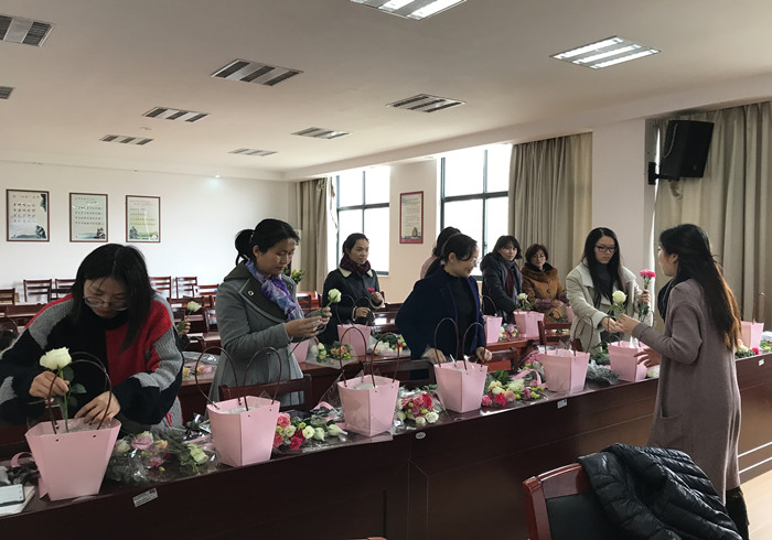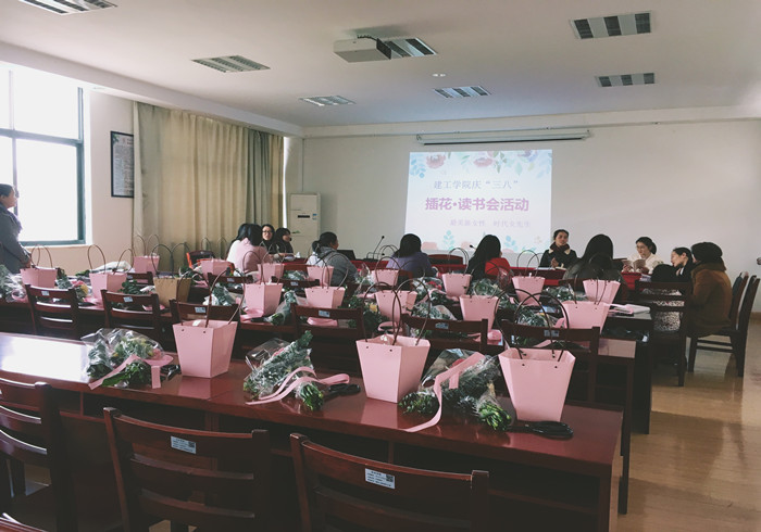为庆祝“三八”国际妇女节,响应“时代女先生 携手育新人”活动,丰富女教工的工作和生活, 2019年3月8日,建工学院分工会举行了插花读书会活动。
