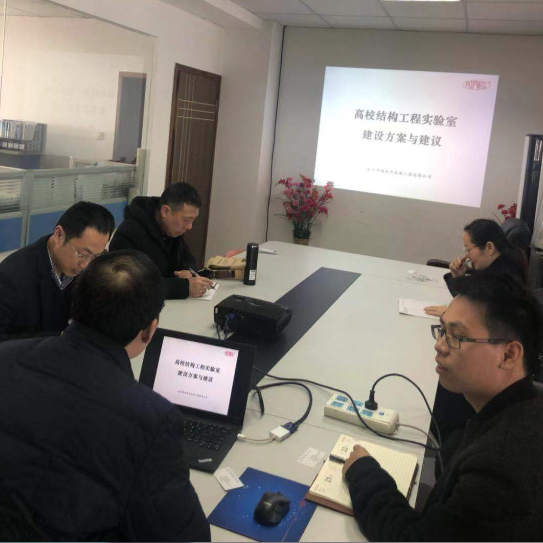在邦威建筑仪器公司,建工学院一行听取了公司技术人员对实验室建设方案的建议,查阅了该公司以往所作项目,对优秀的案例进行分析,并且对比了目前台州学院拟建实验室的场地尺寸、地基条件、科研方向等,论证了拟建实验室的反力墙、反力地槽建设、科研仪器设备等配置方案。
