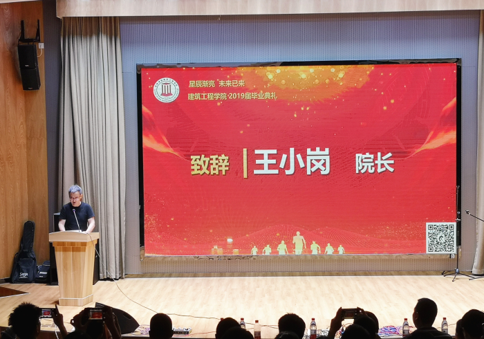 王小岗院长代表学院祝贺2019届毕业生顺利完成学业,并对即将走出校门的毕业生提出三点希望:一是做正确的事和正确地做事,坚守道德底线,不碰法律红线,养成良好职业操守;二是学会工作、学会生活,在工作上要踏实做事、扎实筑业,在生活中要不亢不卑、宽容厚道;三是做一个敢于担当、勇于挑战、主动追梦的时代青年,关心母校的建设和发展,常回家看看。