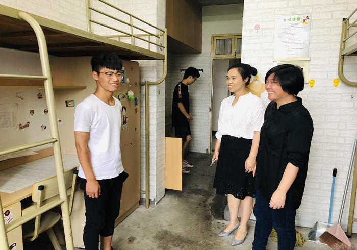 9月1日下午,建筑工程学院党总支书记金凌虹、党总支副书记郑晓莉以及辅导员走访新生寝室,对已经到校的新同学表达了深切的关心与期望。