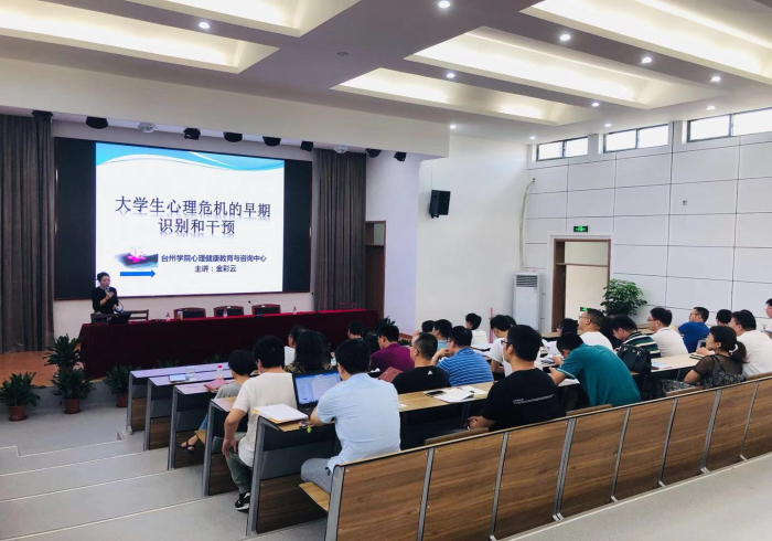 讲座伊始,一个心理健康知识热身小测试,迅速引起师生对心理健康问题的关注。金彩云主任结合自身多年心理咨询和危机干预工作的经历,阐述了加强心理健康教育工作的重要性与紧迫性,通过分享典型的工作案例和翔实的图文资料,全面系统地讲解了大学生常见心理问题、心理危机的早期识别以及危机干预的措施方法。