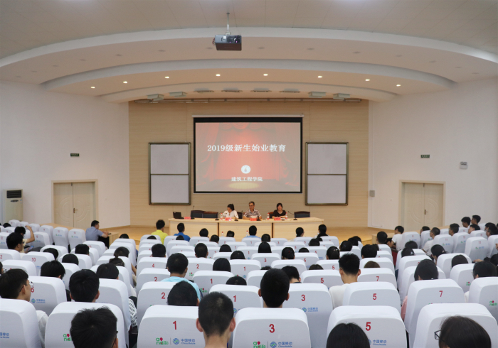 9月9日晚,建筑工程学院2019级新生始业教育大会在歌曲《我和我的祖国》中拉开帷幕。学院领导班子、系室主任、新生班主任、辅导员和教学秘书及2019级新生参加大会,学院党总支副书记郑晓莉主持会议。