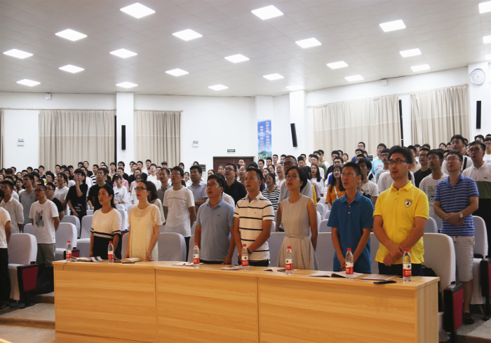 新生班主任代表刘子振老师勉励新生,勿忘初心,脚踏实地,努力拼搏,实现“一样的出彩,不一样的精彩”。学院辅导员结合各块工作,解读大学关键词和相关规章制度,并就青年大学生的信仰、使命等问题进行交流,帮助新生更好融入大学生活,引导其树立正确的世界观和人生观。团学会主席朱家成带领全体新生齐读《学风建设及文明养成倡议书》。