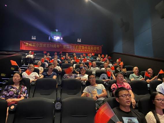 10月7日下午,建工学院分工会组织教职工和部分学生党员集中观看电影《我和我的祖国》。电影以独特的视角,从7组小人物亲身经历新中国7个历史瞬间切入,讲述了包括新中国成立、我国第一颗原子弹爆炸成功、香港回归、北京奥运会等重大历史事件背后的故事。影片中表达的情感真挚而感人,观影现场大家时而默默拭泪,时而捧腹爆笑。当电影结尾播出片尾曲《我和我的祖国》时,大家顿时热泪盈眶,情不自禁一同放歌。