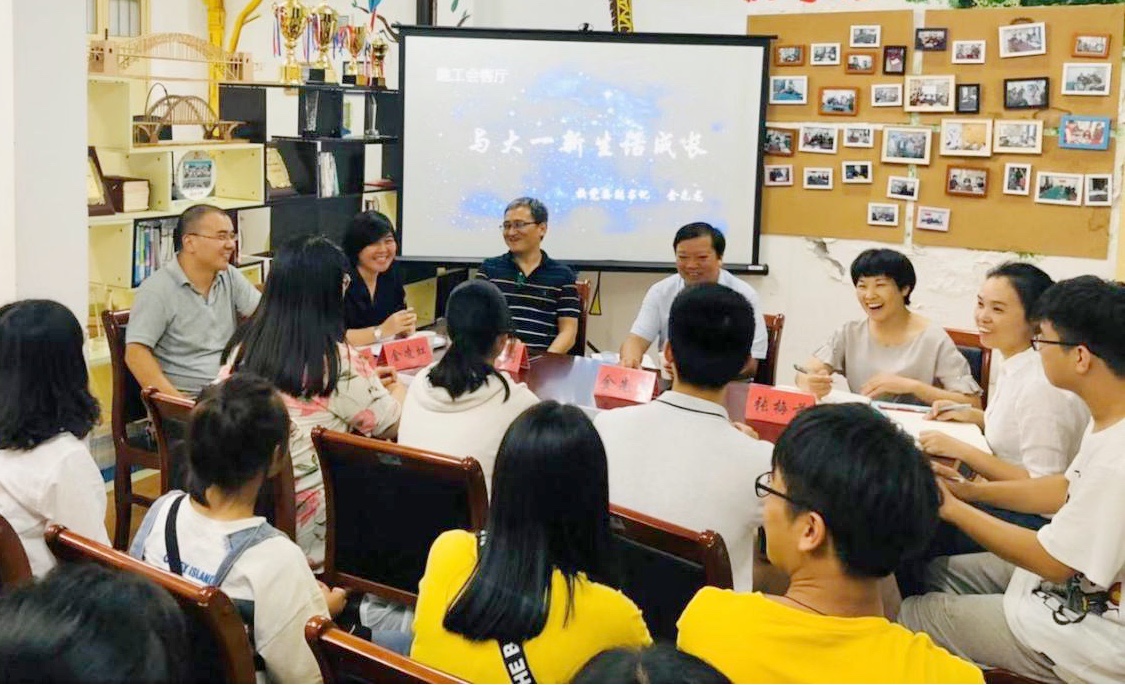 10月9日晚,校党委副书记金先龙做客“建工会客厅”,与学院19级新生畅谈人生,共话成长。校学工部部长张梅芬、副部长王林军、学院党政班子领导、辅导员及20多名新生代表参加交流活动,学院总支书记金凌虹主持交流会。