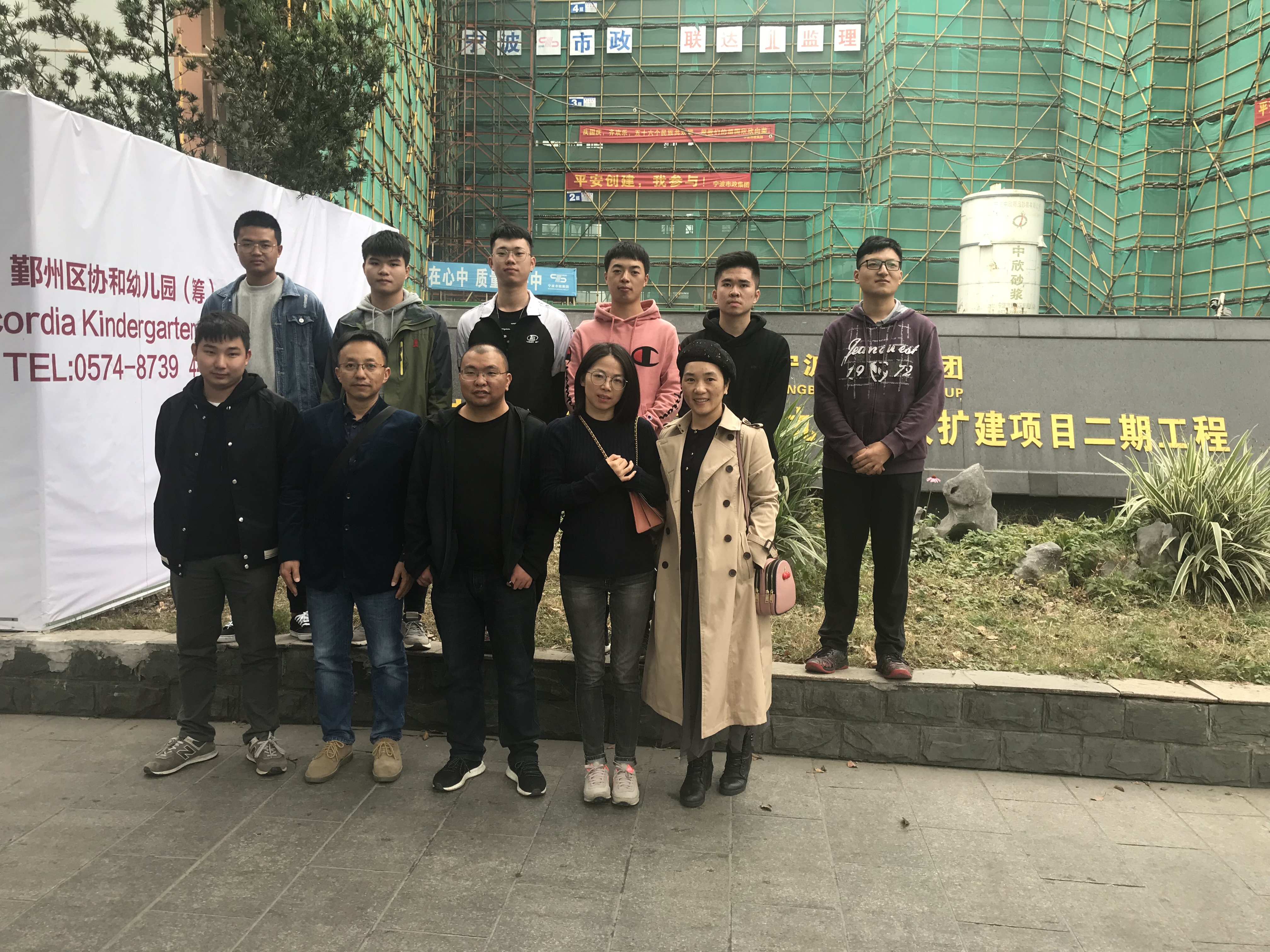 11月12日,学院土木系柯云斌、俞静、杨志及学院学工办主任郭健红老师等一行奔赴宁波,对在宁波的邱银涛等七位同学的毕业实习情况进行了例行检查。