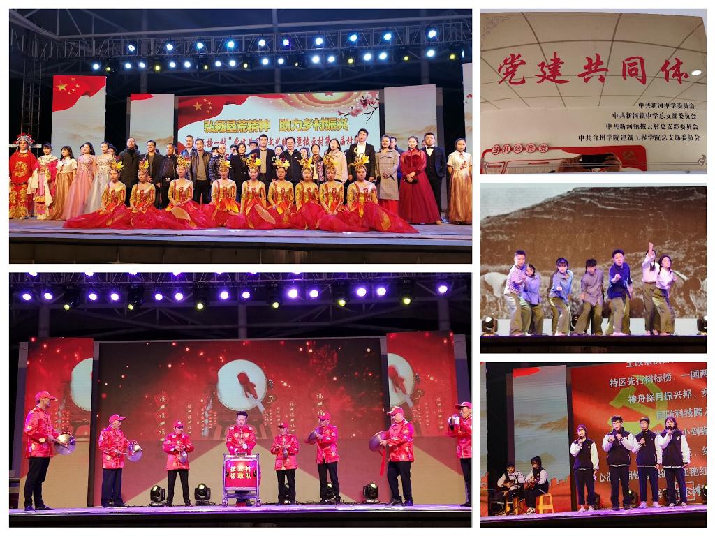 为弘扬垦荒精神,助力乡村振兴,12月1日晚,由披云村党总支主办,建筑工程学院党总支、新河中学党总支、新河镇中学党总支协办的“三校一村”党建共同体文艺晚会暨披云村第二届村晚在披云村健康公园顺利举行。校党委副书记潘通天、组织部副部长谢志昂、建工学院党总支书记金凌虹等应邀出席,台州学院大学生艺术团30多位师生演员参加。