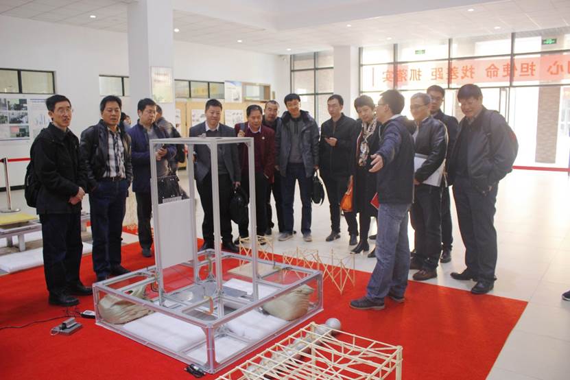 与会专家一同前往建工学院现场参观与指导“装配式减震科研楼”和“装配式建筑结构”两个赛题模型加载试验;后又前往竞赛场馆进行了实地考察。