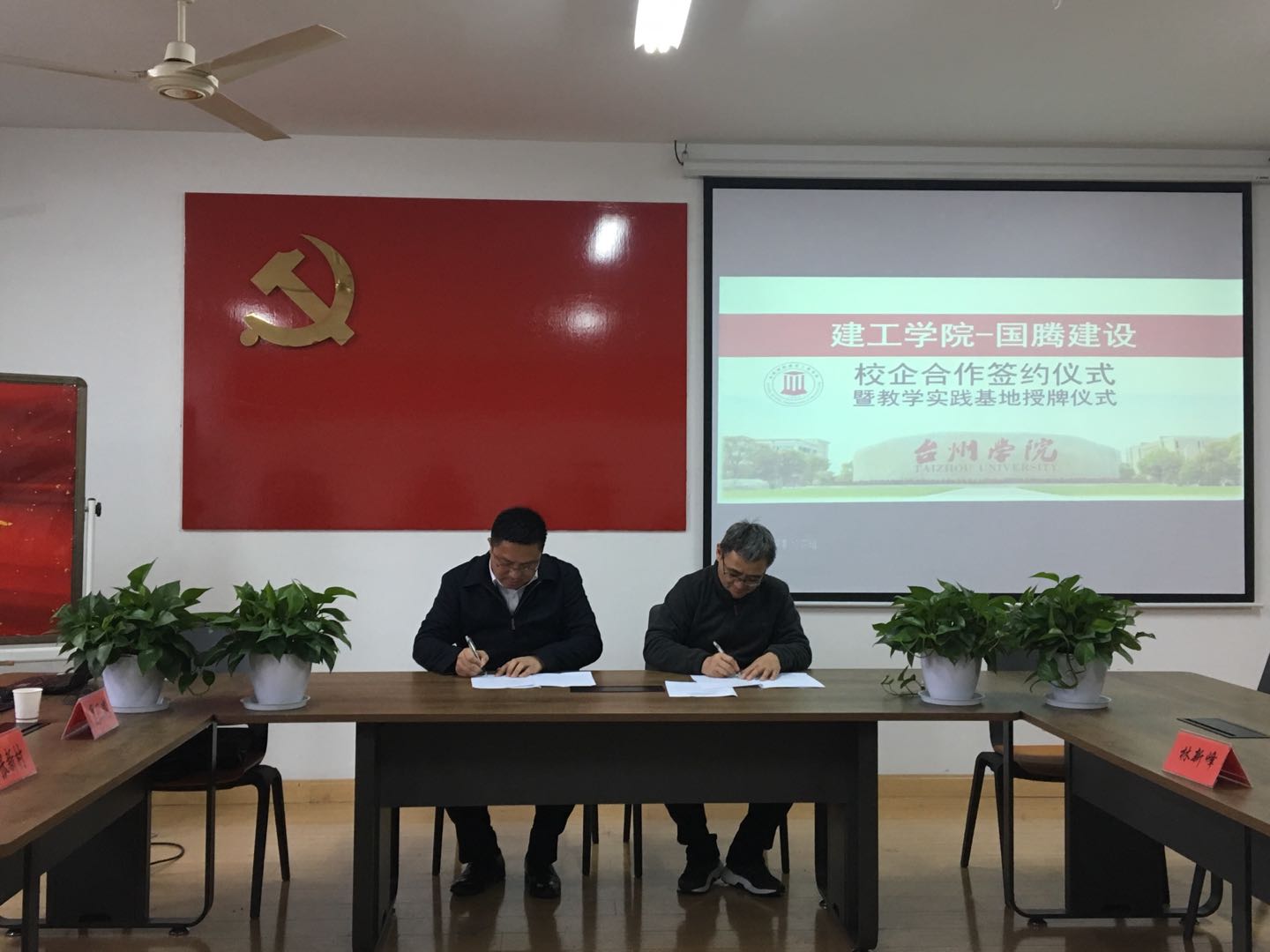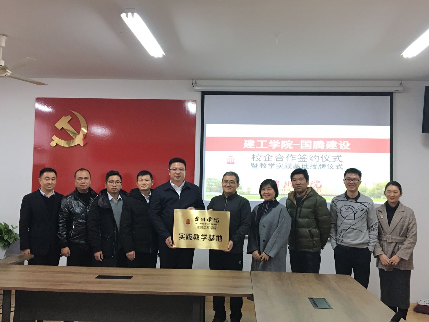 12月24日下午,建工学院与浙江国腾建设集团有限公司签订校企合作协议书,并举行了教学实践基地授牌仪式。学院院长王小岗、党总支书记金凌虹、建筑系主任林新峰、建筑系副主任颜丰、国腾建设董事长赵建国、总工程师张新村、党支部书记陈叶添等出席并参加仪式。