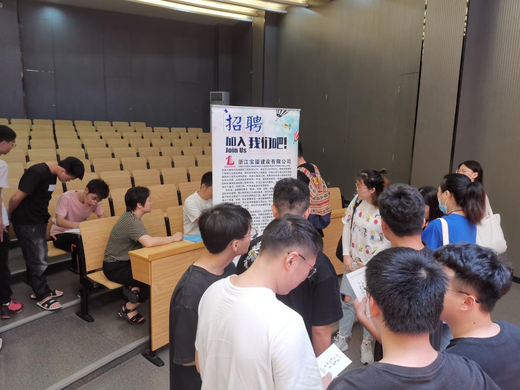 会议结束后,方远建设集团、华神建设集团、中国核工业第二二建设有限公司(三门核电)、浙江钢泰钢结构工程有限公司、鹏远建设有限公司、台州普立德建筑科技有限公司、浙江宝厦建设有限公司现场7家企业现场与学生进行了实习见习对接活动。