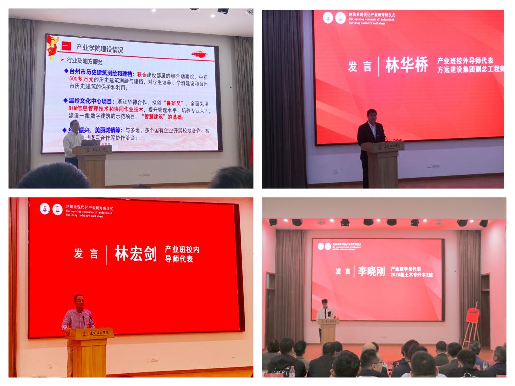 11月3日,浙江省建筑业现代化台州产业学院产业班开班仪式在建筑工程学院举行。副校长李钧敏出席并讲话;台州市住房和城乡建设局副局长厉维军,方远集团党委副书记、副总裁张学形,校党委委员、宣传部长金松为浙江省建筑业现代化台州产业学院产业班揭牌。建工学院党总支书记潘瑛主持开班仪式。