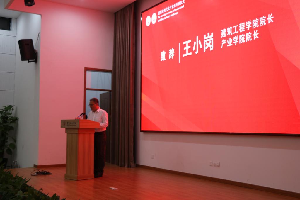 建筑工程学院院长王小岗致辞,感谢市住建局、方远建设集团对产业班的大力支持,相信在学校的高度重视和关心下,有信心将建筑业现代化产业班会办好。副院长王仕方介绍了产业班建设情况和明年工作思路。产业班学员代表、校内导师代表及企业导师代表分别做了表态发言。