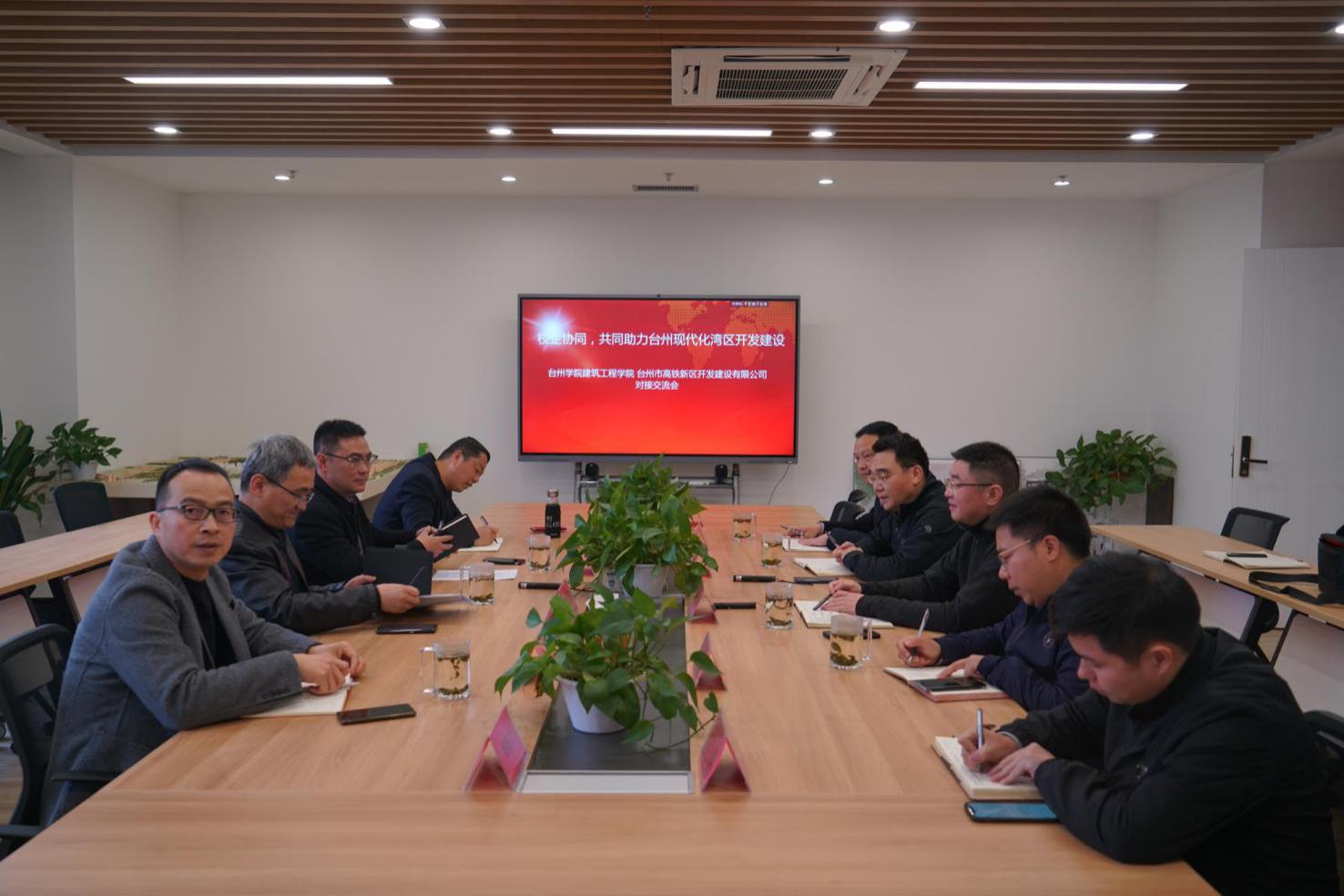 3月21日下午,建筑工程学院院长王小岗率“1139湾区建设小分队”一行5人,与台州市高铁新区开发建设有限公司举行校企合作对接会。台州市高铁新区开发建设有限公司总经理梅胜军主持会议,副总经理缪斯、叶文天、戴国法及各部门负责人参加。