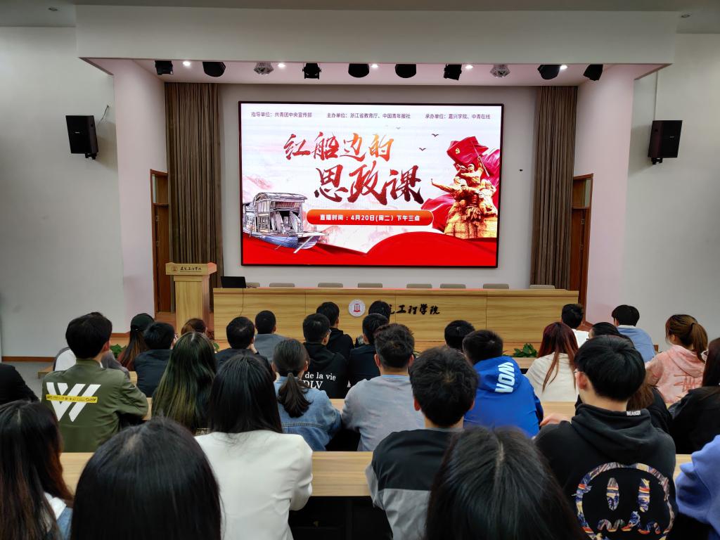 2021年4月20日下午,建工学院全体学生党员和入党积极分子在学院报告厅集体观看由省教育厅和中国青年报社联合举办“百年·初心·使命”同上一堂红船边的思政课。
