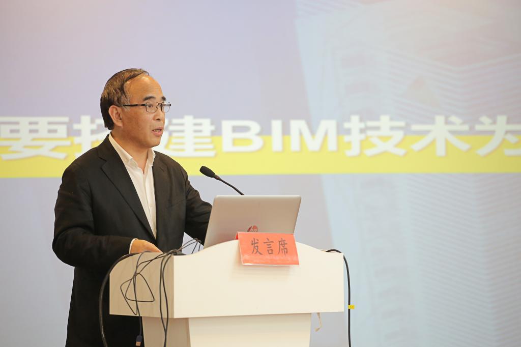 授牌仪式后,姜仁、胡云林分别做了题为《BIM技术的延伸、应用及标准》、《建筑工业化部件部品检测检验与实验室建设》专题报告;徐勤介绍了上海市建筑项目特点、实施情况及BIM技术的应用情况。顾泰昌在讲话中结合BIM技术在建筑领域应用的重要意义,重点介绍了我国BIM领域相关政策、标准及应用现状;他希望学院能关注学科专业发展前沿、开展跨专业跨学科跨领域研究,积极参与或主编行业相关标准。专家们的精彩报告和讲话为参会人员带来了新思路、新视野、新活力。