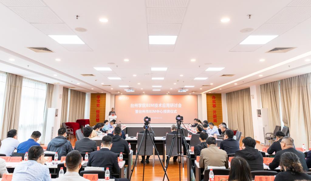 4月22日下午,台州学院BIM技术应用研讨会暨台州市BIM中心授牌仪式在行政楼407会议室隆重举行。中国工程建设标准化协会建筑与市政工程产品应用分会秘书长顾泰昌、中国建筑科学研究院研究员姜仁、中国建材检验认证集团总工程师胡云林、上海市建筑科学研究院检测中心主任徐勤、中国建筑标准设计研究院副研究员宋婕受邀参加研讨会。台州市住建局副局长厉维军、台州学院副校长李钧敏、校教务处处长金凌虹、科研处副处长姚俊、地方合作与发展规划处副处长郑晓莉出席;来自政府、设计、施工、制造、运维等40多家单位嘉宾代表及建工学院领导班子、学院教师代表和产业班学员参加会议。会议由建筑工程学院院长、建筑业现代化台州产业学院院长王小岗主持。