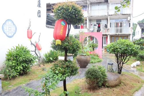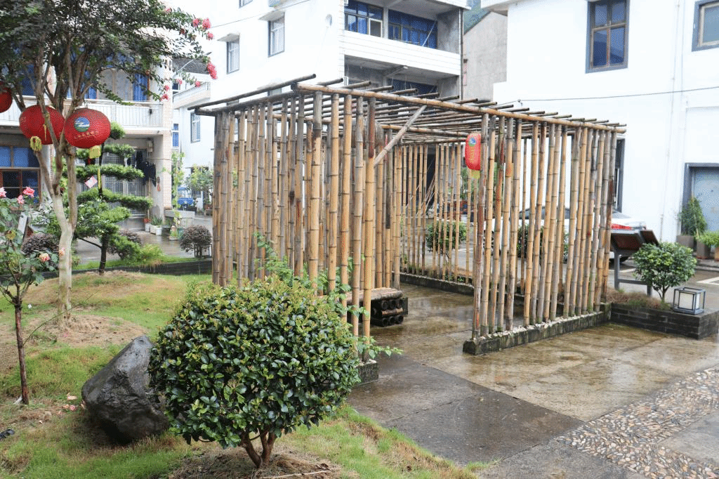 在沿江新兴村,从已落地的几个庭院设计中可以看出,“美丽庭院”整体建设秉承“尊重场地”“就地取材”“废物利用”等理念,充分挖掘当地文化与资源,以竹子、青砖、原石、瓦片为主打元素,营造出独具乡土特色的美丽庭院。走在新兴村的乡间小路上,可以看到很多虚实结合的墙绘,远观只是一幅画,近看却发现在画中其实藏着实物,令人耳目一新。参赛者用瓶瓶罐罐做出的花盆及装饰品、碎石、瓦片做的矮墙、废弃石块做成的地面等,用竹子搭建的亭子,让原本普通的竹子也变成村中一道靓丽的风景线。此外,每个美丽庭院都种植了大量乡村本土植物,可以想象,待到花开时节,这将会是一幅多美的画卷。