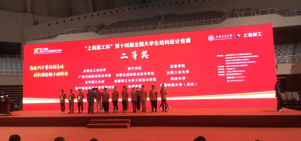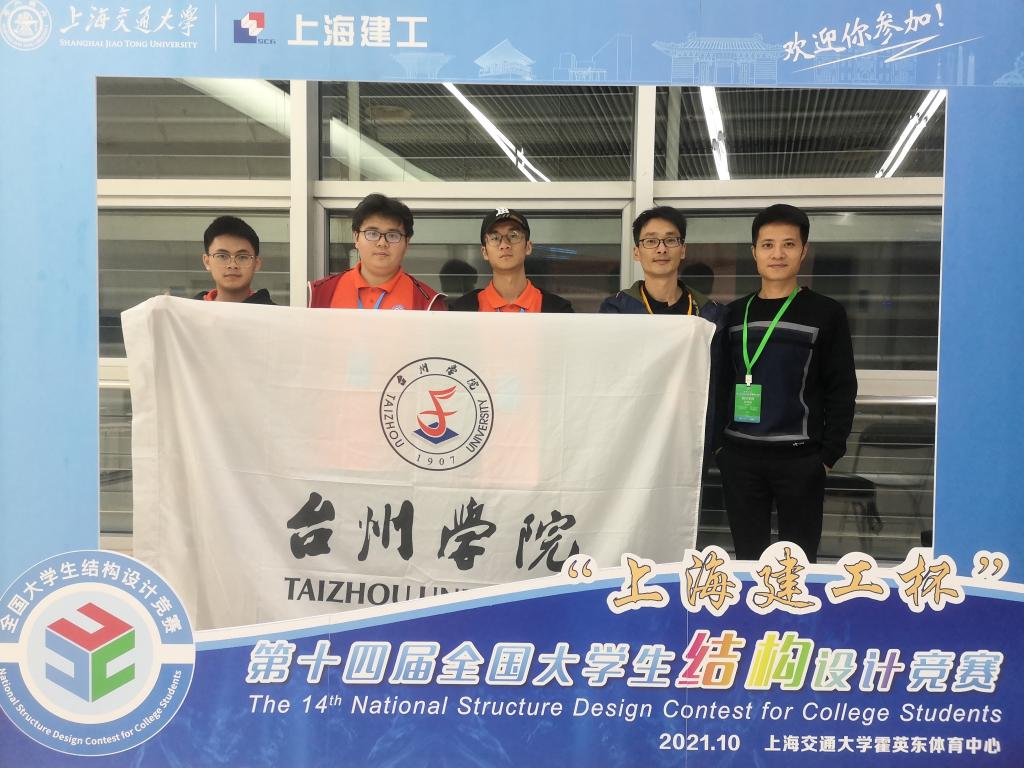 10月13日-17日,第十四届全国大学生结构设计竞赛(国A)在上海交通大学举行,教师张茂雨、王艳茹、沈一军指导,学生陈鹏、杨桂林、石江涛组成的台州学院代表队,喜获二等奖,取得学校在该项级别赛事的历史性突破,同时,台州学院荣获优秀组织奖。