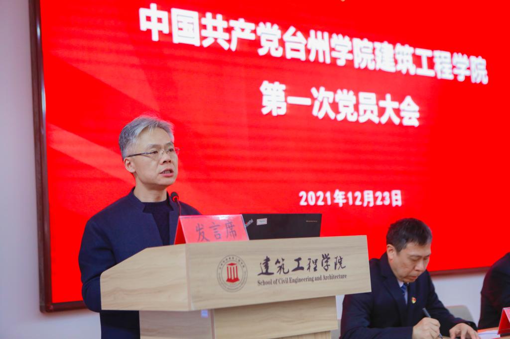 12月23日,中国共产党台州学院建筑工程学院第一次党员大会在学院学术报告厅隆重召开,校党委委员、组织部长杨健国出席并致辞,学院党政班子成员、全体师生党员参加大会,院党委书记潘瑛、副书记林霖分别主持会议。