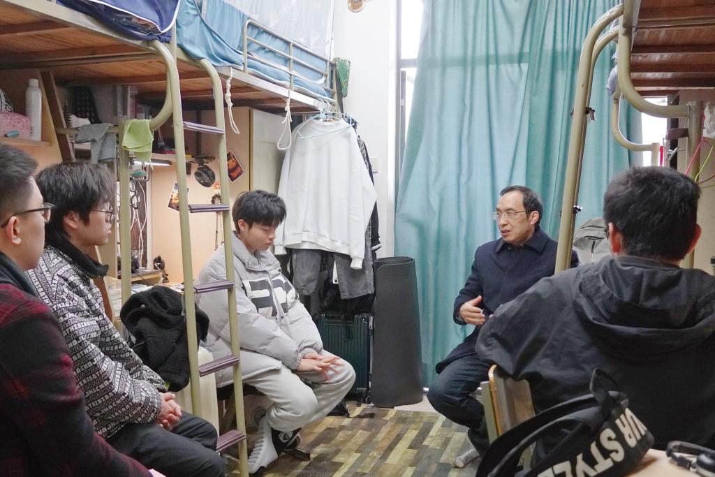1月5日中午,副校长胡韶光走访慰问建工学院学生公寓7号楼601寝室,学院公寓辅导员李鑫陪同。