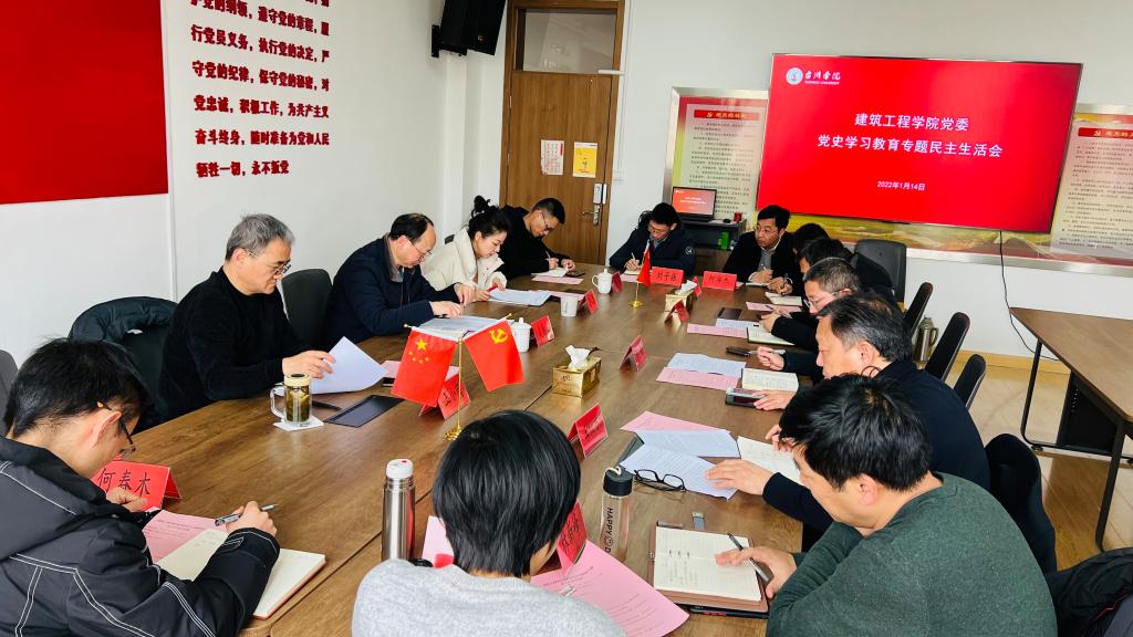 1月14日下午,建筑工程学院召开党史学习教育专题民主生活会。校党委委员、纪委书记吴国庆到会指导,学院党政班子成员出席,学院“两委委员”列席。会议由学院党委书记潘瑛主持。
