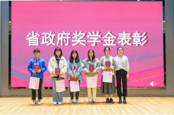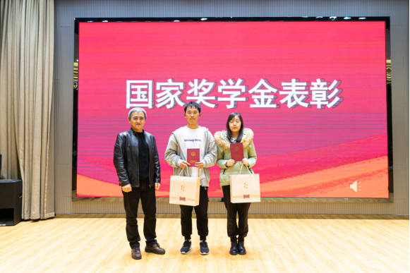 会议共有四项议程,会上隆重表彰了2020—2021学年国家奖学金及省政府奖学金。学院院长王小岗、党委书记潘瑛分别与获奖者合影,并为受表彰同学送上学院精心准备学习礼包。