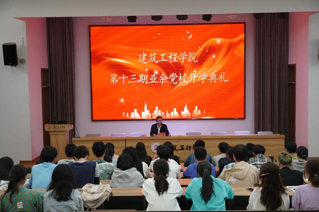 开学典礼在雄壮的《国歌》声中拉开帷幕,随后洪莹宣读《关于举办建筑工程学院第十三期业余党校的通知》,介绍了本次业余党校的授课方式和考核结业的相关规定。
