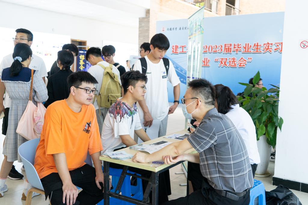 招聘会现场,学院邀请了浙江省建设投资集团股份有限公司、浙江省台州建筑设计院有限公司、台州市社会发展工程管理有限公司等8家企业来校进行实习就业企业校园招聘,提供岗位近200个。